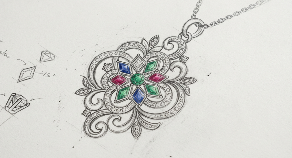 Process from Rough Sketch to your Jewelry masterpiece